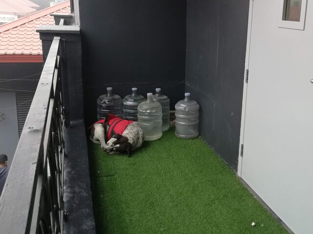 私のオフィスの目の前の道路エリアに、一頭、攻撃的な犬がおりまして。