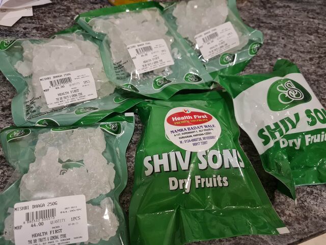 日本で売られているような氷砂糖はインドにはないようで、紐で繋がった氷砂糖を購入。