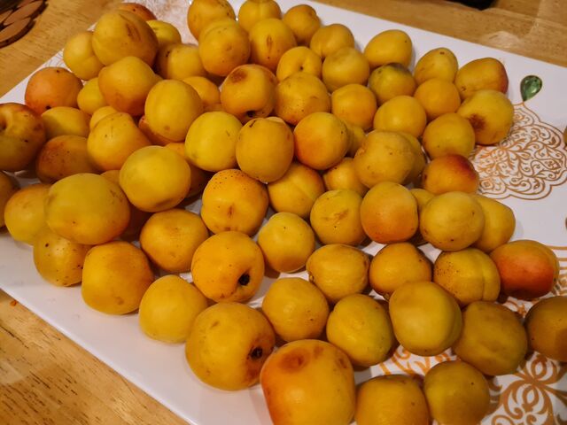 アプリコットを洗って、丁寧に拭いて、ヘタを取る作業を夫と一緒にしました。