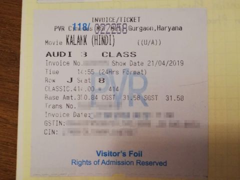 チケットは、3Dのキッズ用スクリーン、Classic Seatで389ルピー=約592円でした。