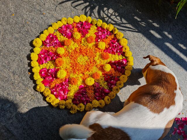 インドの新年Diwaliにはランゴーリーを描いてサリーを着たよ。